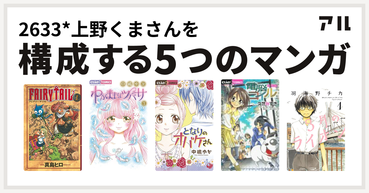 2633 上野くまさんを構成するマンガはfairy Tail わがままなツバサ となりのオバケさん 電脳コイル 3月のライオン 私を構成する5つのマンガ アル