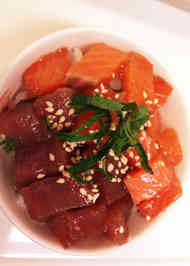 ごま油香る マグロ サーモン漬け丼 レシピ 作り方 By Riruママ クックパッド