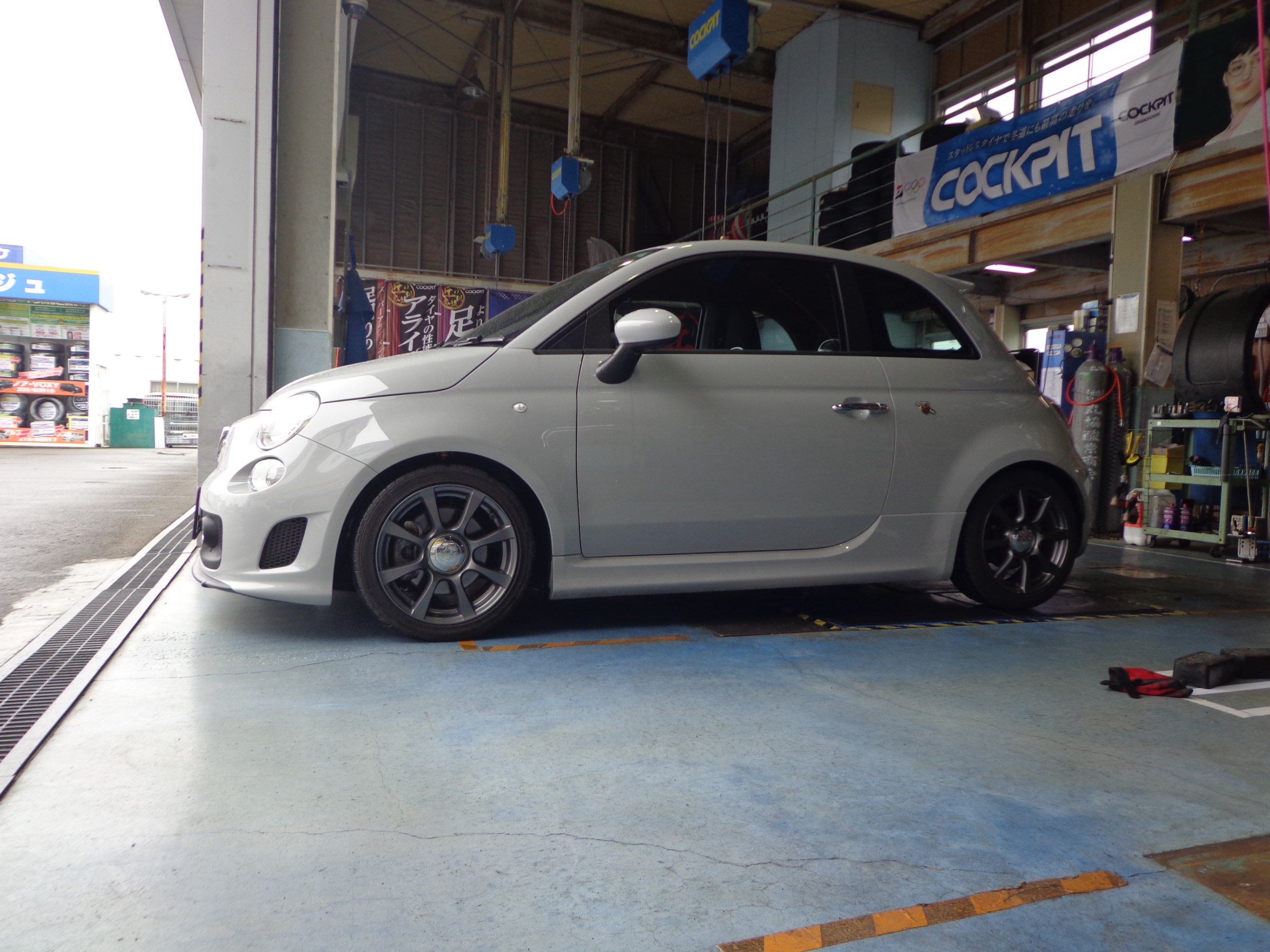 アバルト500 車高調取付 スタッフblog コクピット 藤枝 車のカスタマイズにかかわるスタッフより