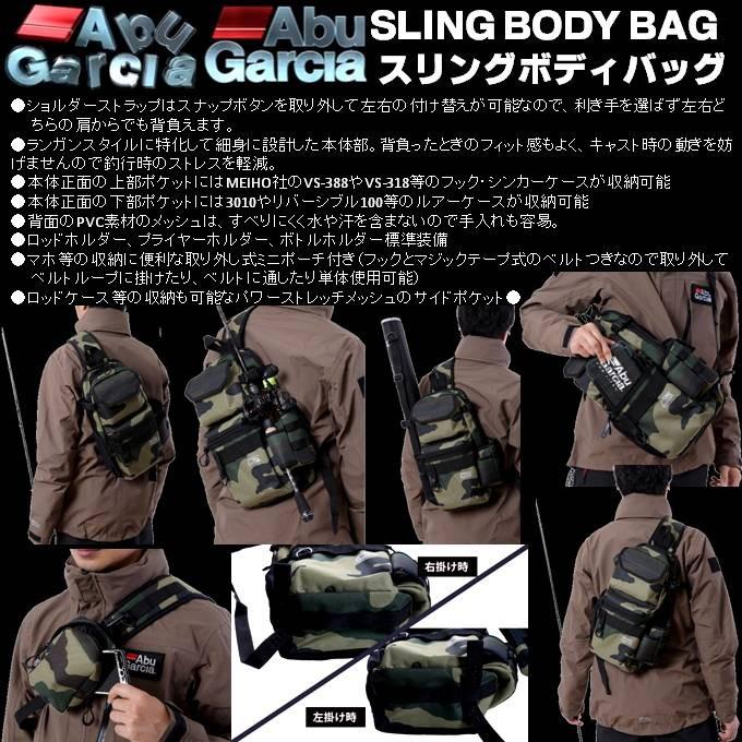 新商品 細身バッグでキャスト時の動きも妨げない アブガルシア スリングボディバッグ 釣りのポイント