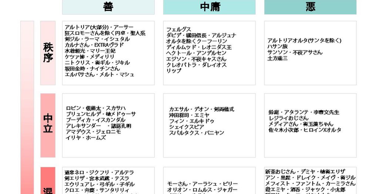 Fgo 各アライメントの独自印象表 や属性概念に関するツイートまとめ Togetter