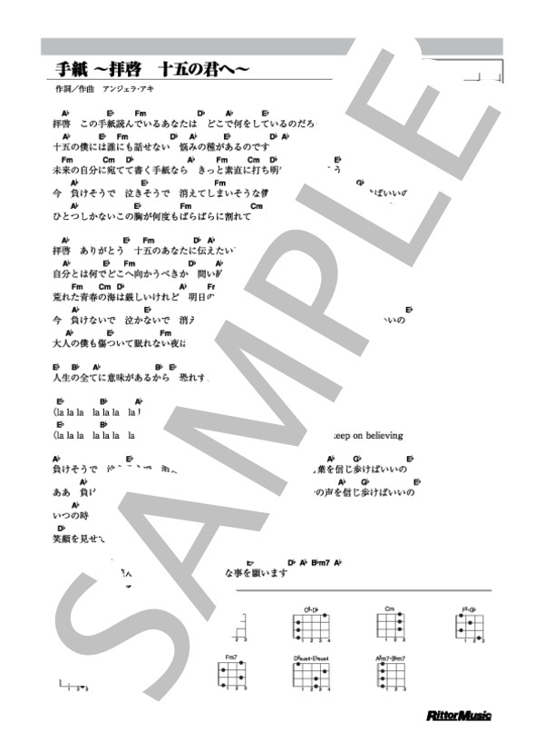 楽譜 手紙 拝啓 十五の君へ アンジェラ アキ ウクレレ弾き語り その他 Piascore 楽譜ストア